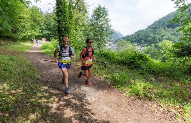 Départ place de la mairie à Cauterets (940 m). La première partie est commune au 20 km. Direction la ferme Igau et ça va monter vers le col de Bourg Dessus (1960 m). Longue montée de 1000 m+ environ sur 6 km. La vue sur la vallée vaut le coup ! Ensuite, descente en direction du Cambasque (1250 m), 1er ravitaillement.