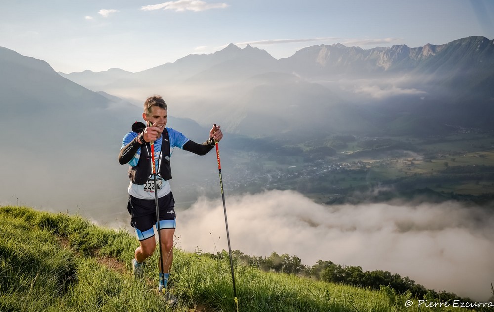 Paul Mathou, qui nous vient de Dordogne, peut être considéré comme un des français les plus solides sur le trail court. Vainqueur de l’Ultra Trail Côte d’Azur Mercantour, du 23 km du Mont-Blanc, de la VO2 Trail des Templiers, 4è sur l’OCC et sur l’Ubaye Trail Salomon… C’est du sérieux. Le voici sur le 35 km du Montan’Aspe après avoir pris connaissance de l’événement dans le magasin partenaire de l’événement (Mendi Sports à Anglet).