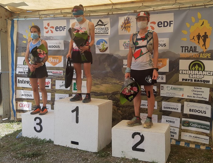 Chez les femmes, domination d’Audrey Carrère dit Coustié, partie sur un rythme élevé. Mais aujourd’hui, ça volait ! Les sensations, le plaisir, tout y était. Tant mieux ! Maud Combarieu, déjà 2è du 53 km en 2019, renouvelle sa 2nde place sur ce 35 km. Il faut bien redémarrer la compétition ! Et c’est déjà pas trop mal. Charlotte Dernis, de l’aviron bayonnais trail n’est pas très loin. Le Béarn devance le Pays Basque !