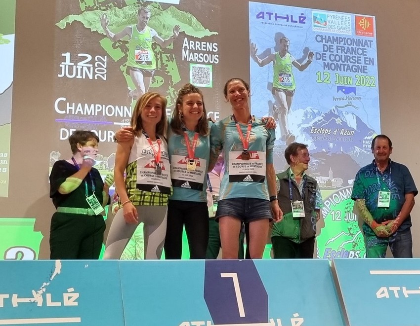 La très belle perf de Rémi Longchampt 4è et premier espoir. Théodore Klein 5è, Quentin Meyleu 6è, Boris Orlhac performant 7è, Jan Margarit Solé (ESP) 8è, Maël Allaire (champion de France junior l’an passé) 9è, Esteban Olivero 10è (3è espoir) et donc 10è du championnat Alric Petit que l’on avait aperçu sur l’Argelès Nature Trail. Les Esclops sont enfin titrés par équipe ! Fierté immense pour le président, avec, entre autre, la 2è place en espoir de sa fille Justine (3è cadette ici en 2018).