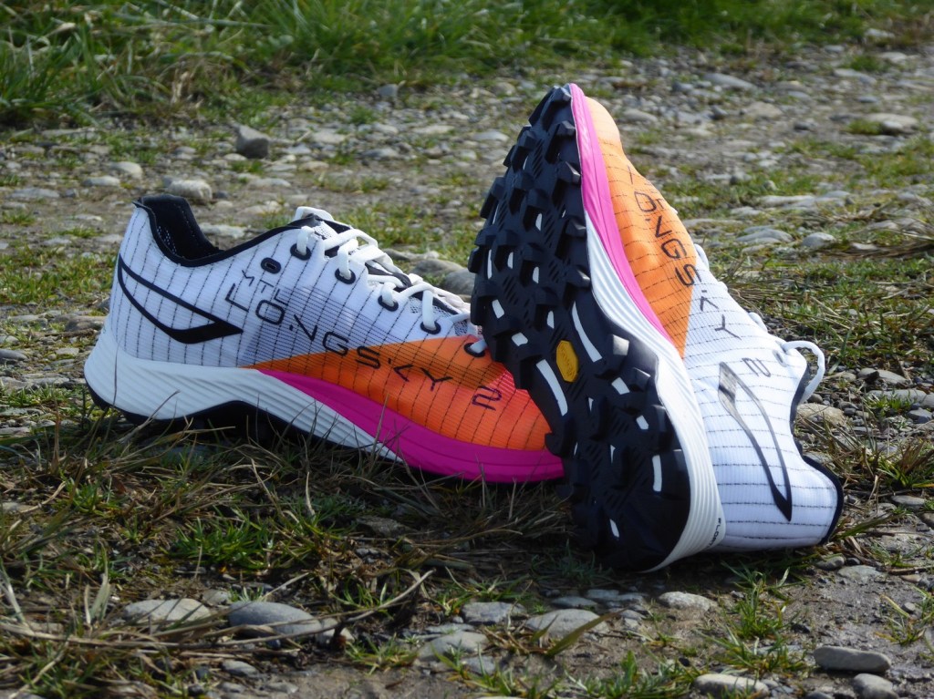 Le contact avec le sol peut paraître ferme pour ceux qui ont de l’épaisseur et qui aiment la mollesse. C’est surtout dû à la semelle extérieure en Vibram MegaGrip, au contact sec sur sol dur. Car sinon, la mousse de la semelle intermédiaire en FloatPro est plutôt douce, avec un écrasement limité. Bref, je trouve le compromis équilibré. Quand on engage la foulée, on sent qu’on n’est pas sur un modèle de pure racer, mais ça tient sans trop coûter au niveau énergétique.