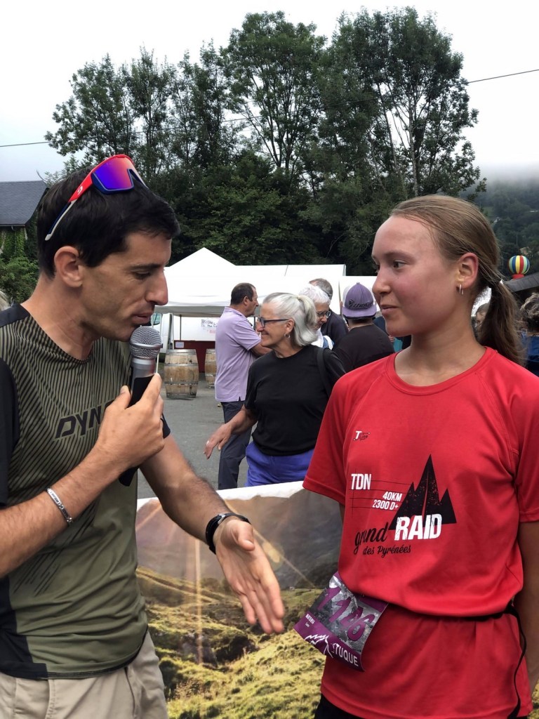 Au micro de l’événement : Mathieu Bertos comme d’habitude, accompagné de Robin Thomas. On va voir Daniel Lanne, le directeur de course : c’est oui pour Bazès ! Le parcours sera complet. L’an dernier, la pluie avait rendu ce sommet rocheux impraticable. Cette année, apparemment, il est au dessus des nuages ! Pour l’instant, à Arrens, nous l’avons en dessous.