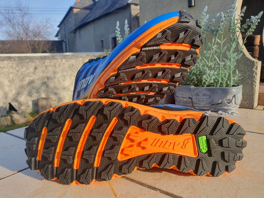Je trouve la semelle extérieure bien armée (crampons de 5 mm) : assez fournie mais offrant un peu d’espace entre chacun, inversés selon le sens.